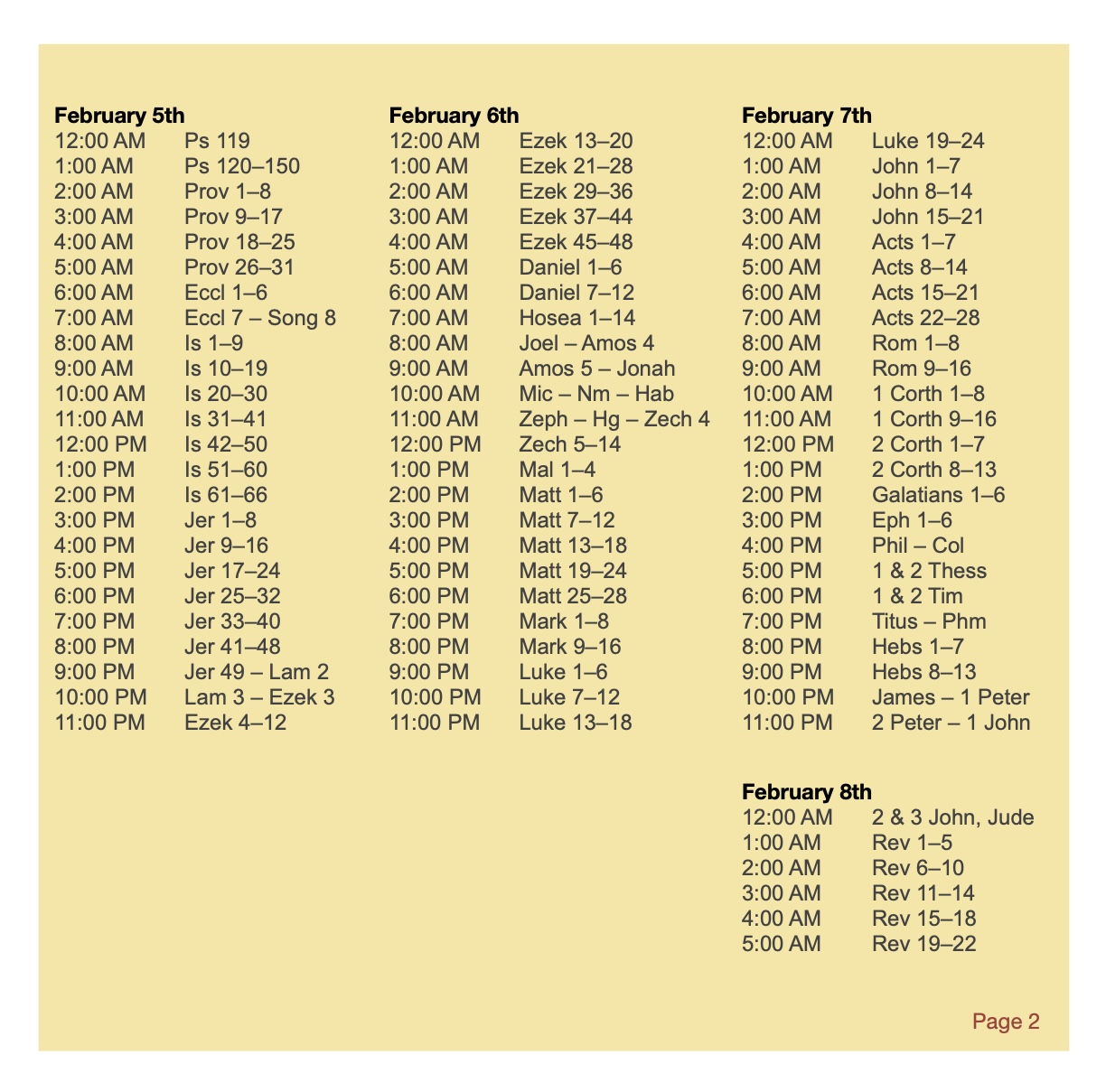 Sign up to read through the Bible cover-to-cover in 8 days. Each 1 hr time slot is assigned a passage. This will be a special time of personal reading and church-wide reflection and surrender. Time slots are limited you can sign up as an individual or with others.